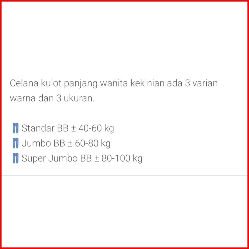 Celana Kulot Jeans Wanita Size Standar-jumbo-super Jumbo
