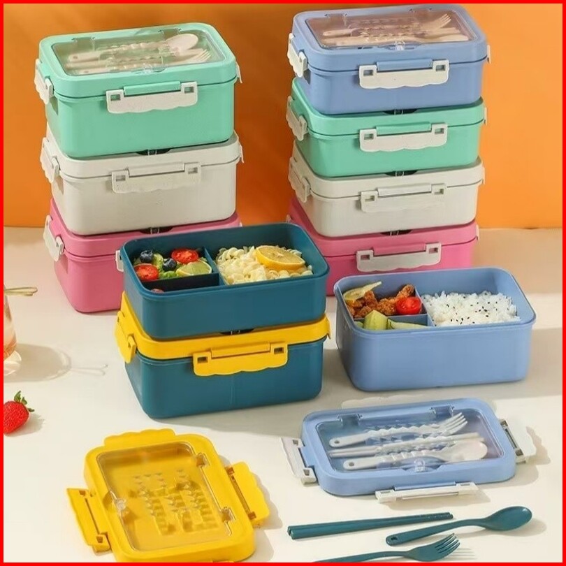 Fivevoo Set Kotak Bekal Makan 1000ml 4 In 1 Lunch Box Dengan Sendok Set Alat Makan Kotak Bekal Sekolah Anak