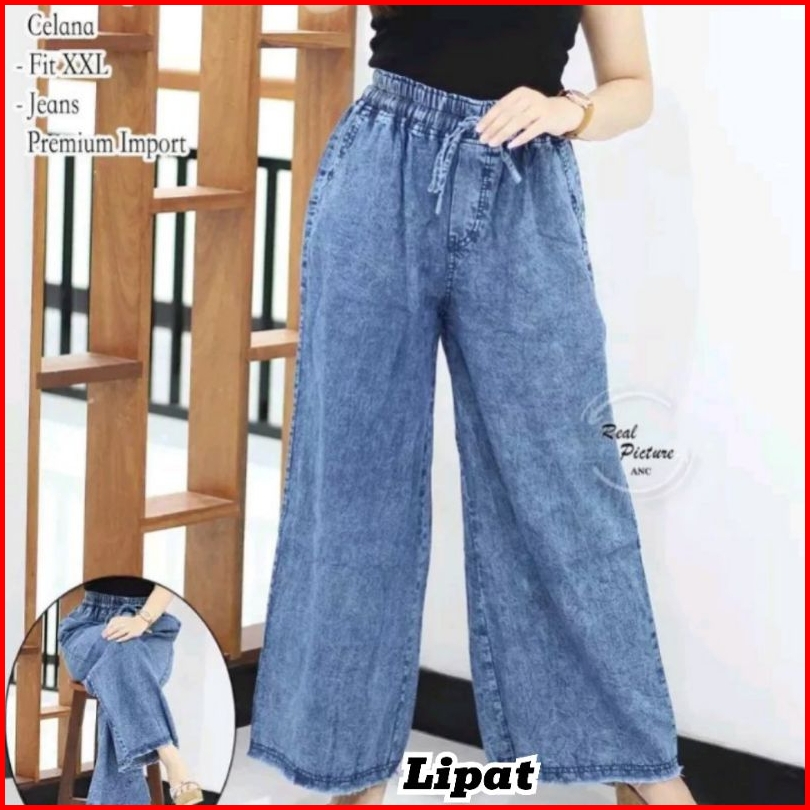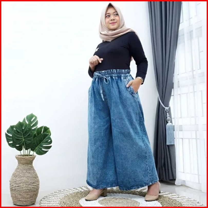 Kulot Jeans Wanita Pinggang Full Karet Standar Dan Jumbo