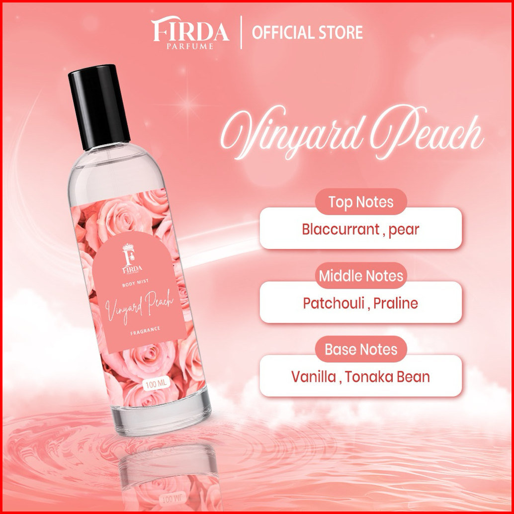 Firda Parfume Body Mist Vinyard Peach 100ml Parfume Bunga Buah Parfum Wanita Parfum Pria Bpom Halal