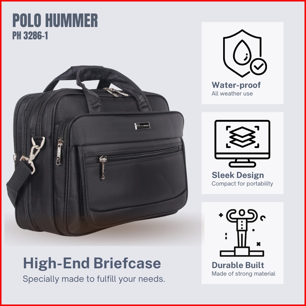 Tas Kantor Kerja Pria Selempang Jinjing Bisa Expanding - Briefcase Original Import Polo Hummer