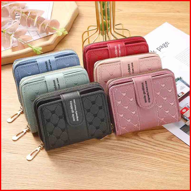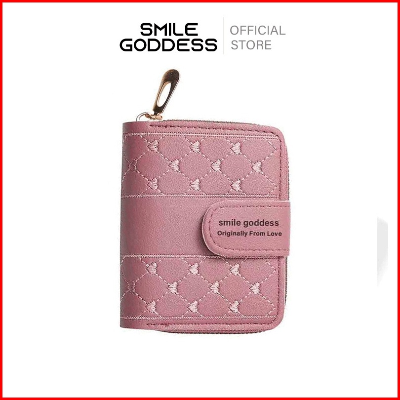 Smile Goddess Versi Korea Wanita Dompet Fashion Ritsleting Tas Koin Bordir Dompet Kulit 916
