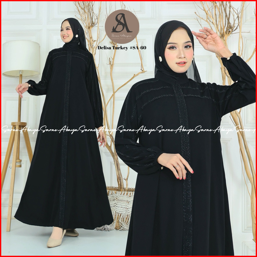 Sarae Abaya Turkey Premium Delisa Sa-60 Jetblack Payet Cantik Muslim Mewah Elegan Pesta Arab Turki