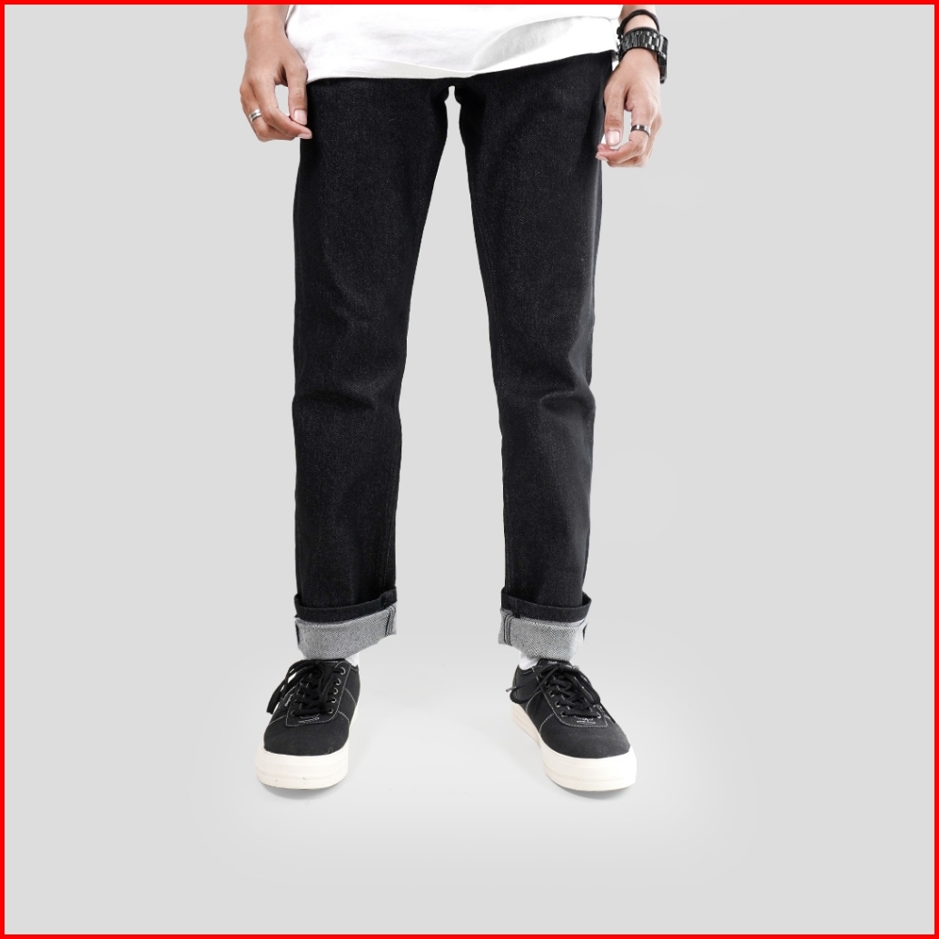 Prodigo Todo Celana Jeans Pria I Jeans Hitam Pria Slim Fit Stretch I Celana Denim Selvedge Accent I Denim Pants Black