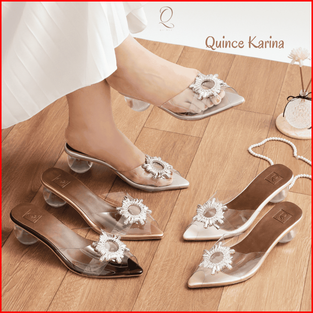 Quince Karina Sandal Mules Wanita Hak Kaca