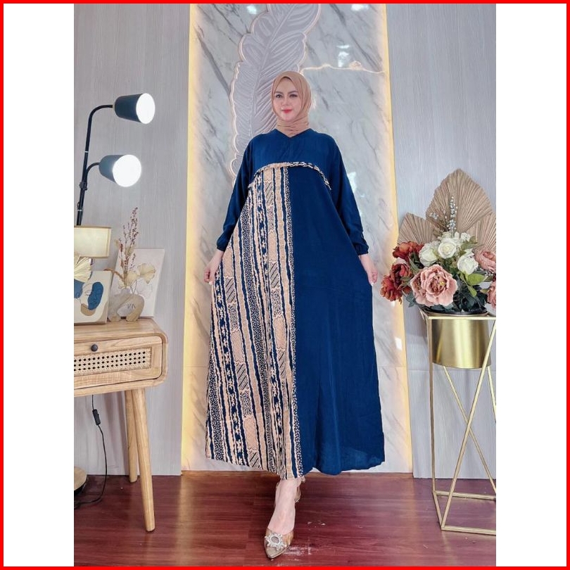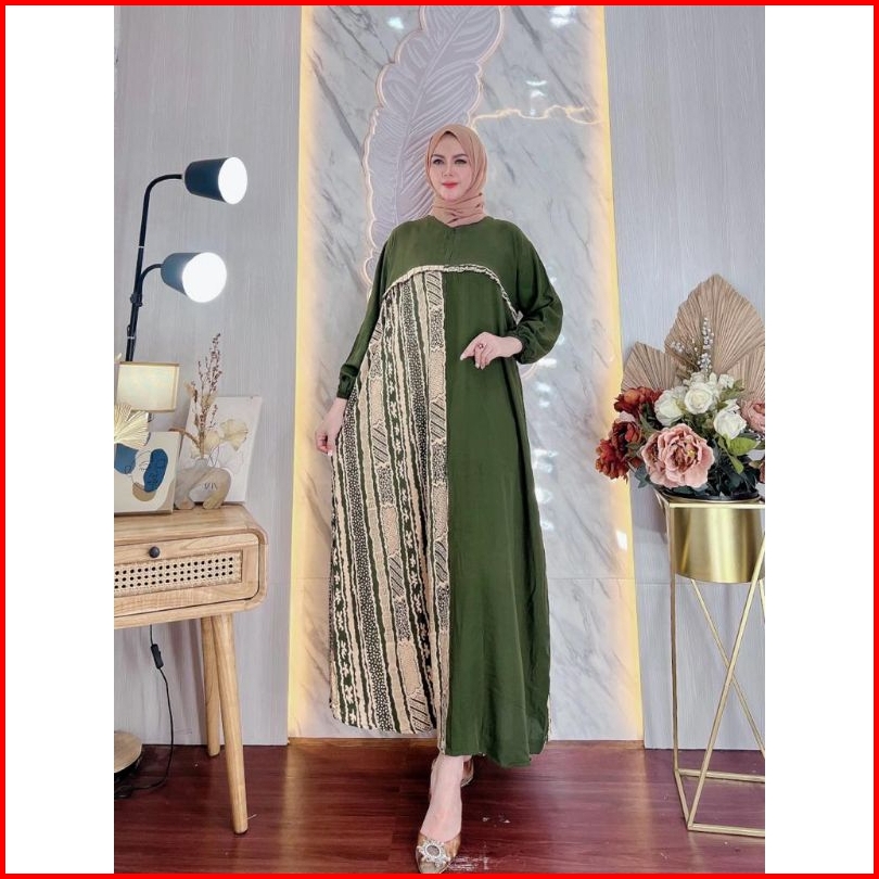 Longdress Jumbo Polos Motif Lengan Panjang Rayon Premium