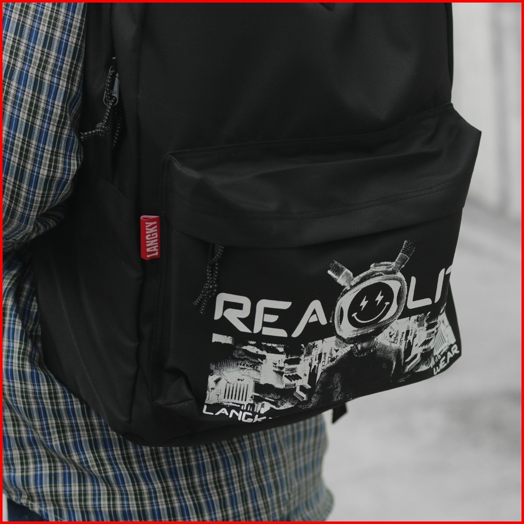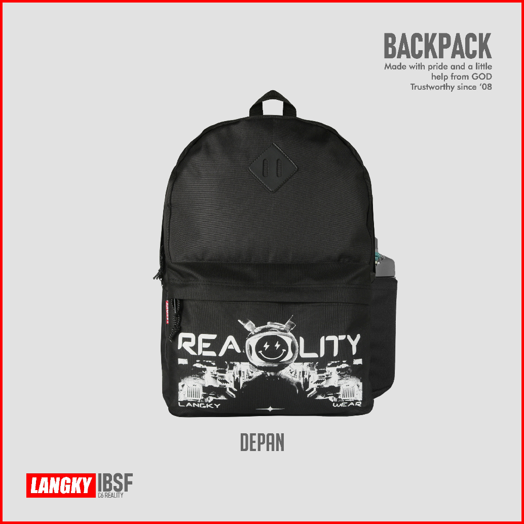 Langky Tas Gendong Sekolah Simple Laptop Ransel Pria Wanita Distro Ibsf C6 Reality Black