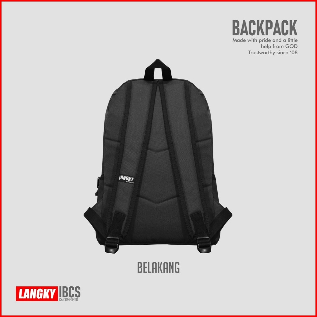 Langky Tas Gendong Sekolah Simple Laptop Ransel Pria Wanita Distro Ibcs Rc Comforto Black
