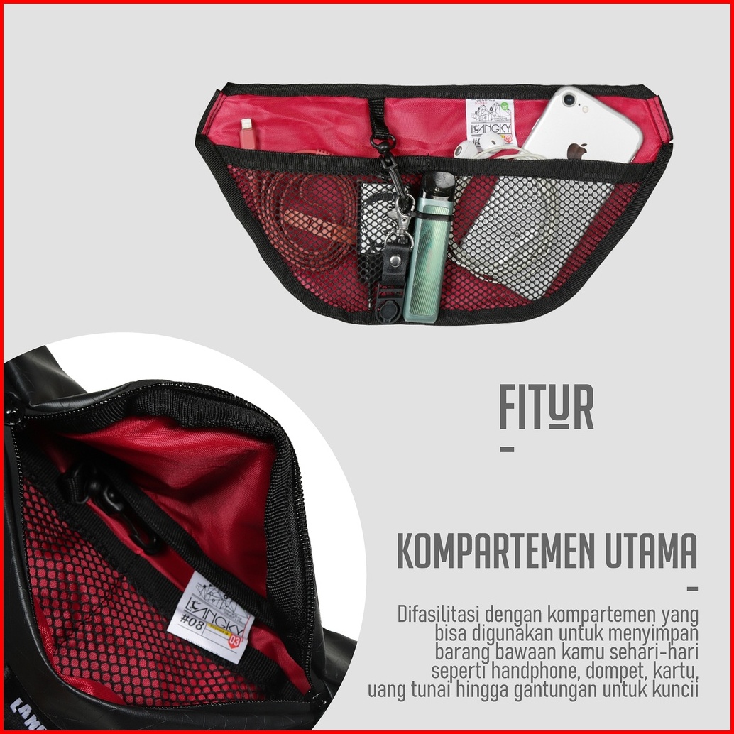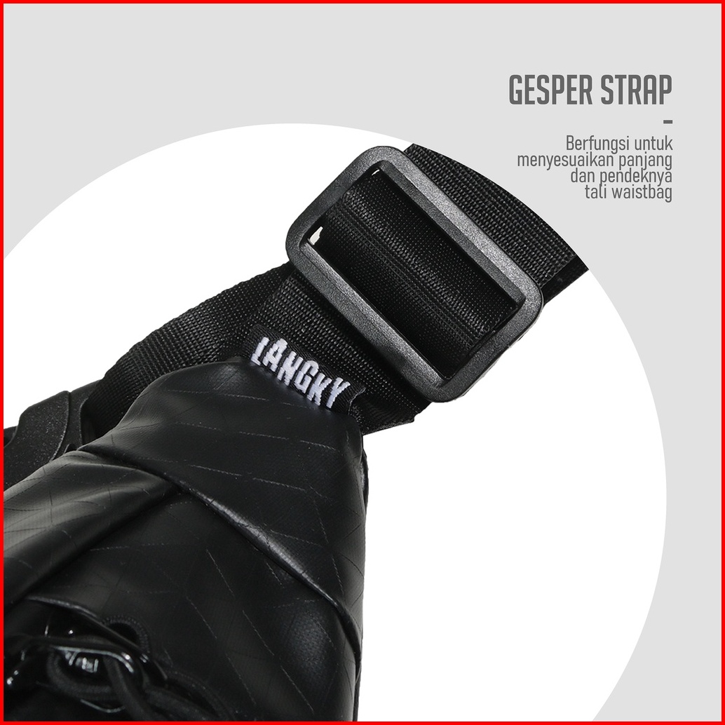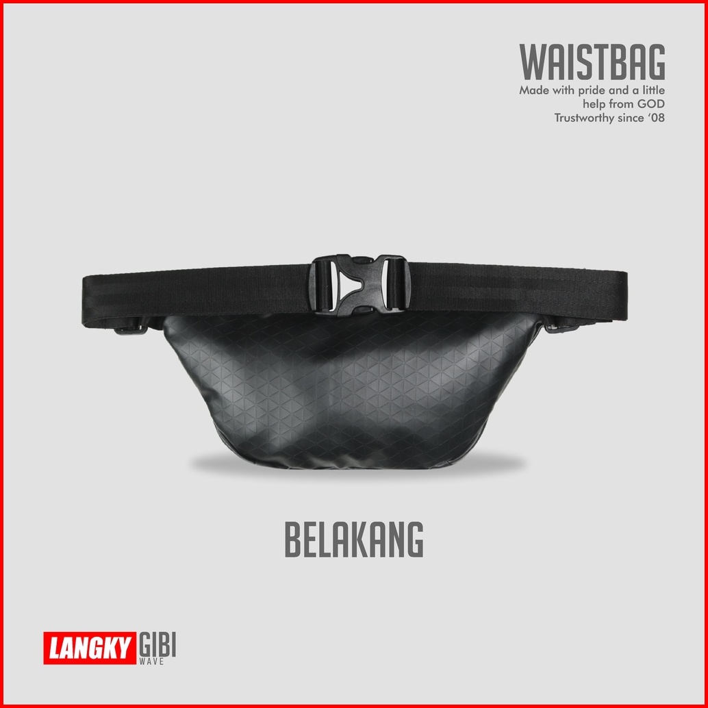 Tas Langky Waist Bag Pria Wanita Waterproof Anti Air Gibi Wave Hitam