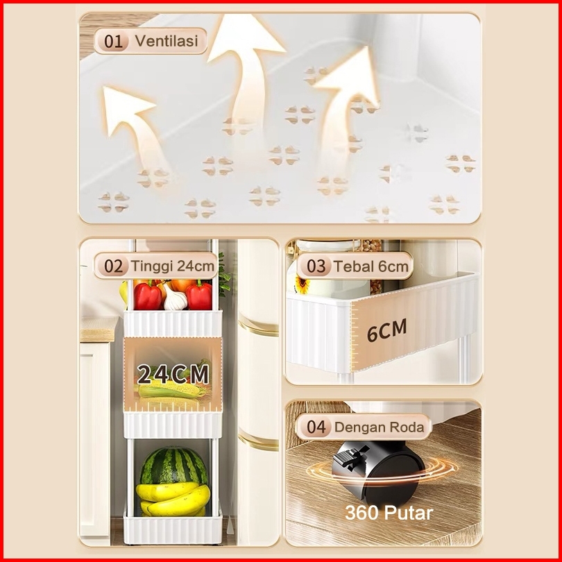 Dejavu Rak Troli Susun Serbaguna Tempat Penyimpanan Makanan Rak Dapur Hrk521