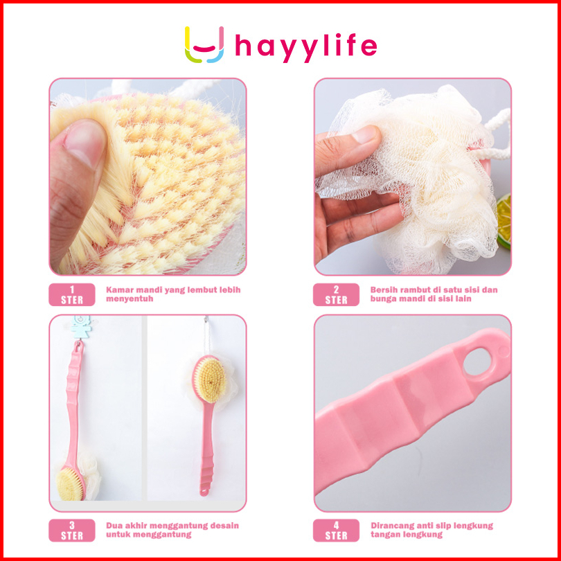 Hayylife 2 In 1 Sikat Punggung Badan Mandi Dengan Puff Mandi Dan Gagang Ekstra Panjang Hl-bda502