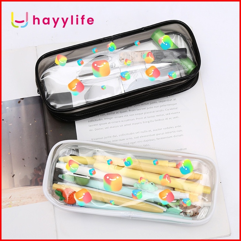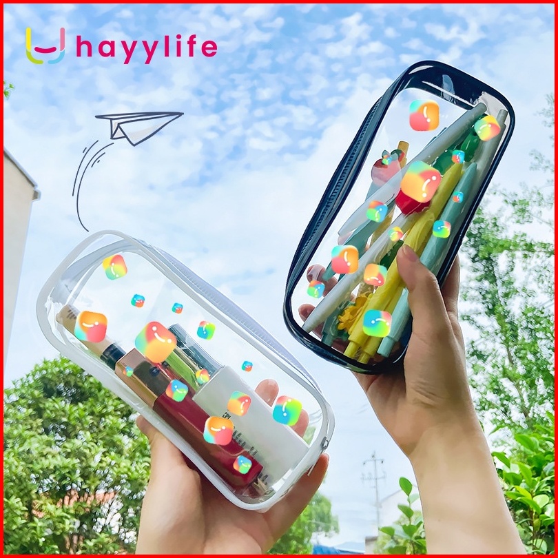 Hayylife Transparan Pencil Case Simple Minimalis Aesthetic Pouch Bahan Plastik Pvc Hl-aia777