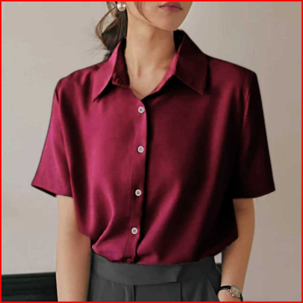 Kemeja Wanita Pendek Kemeja Putih Hitam Kemeja Atasan Pendek Wanita Kerja Kasual