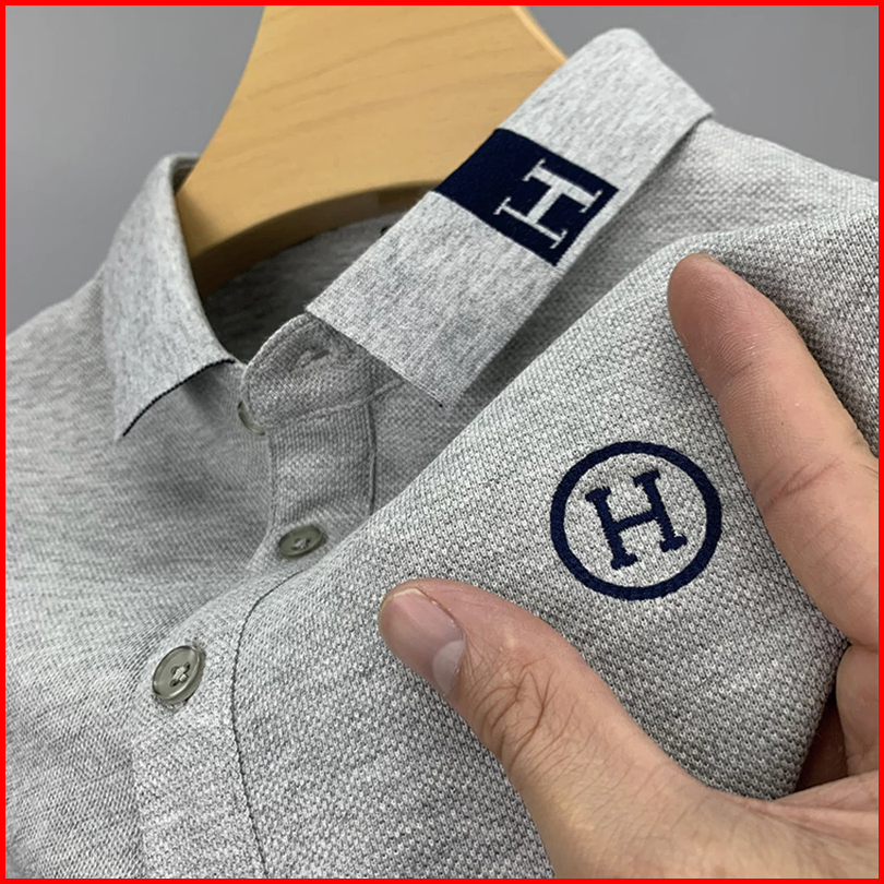 Impor China Polo Shirt Pria Premium Kasual Bordir H Lengan Pendek Bahan Nyaman Adem