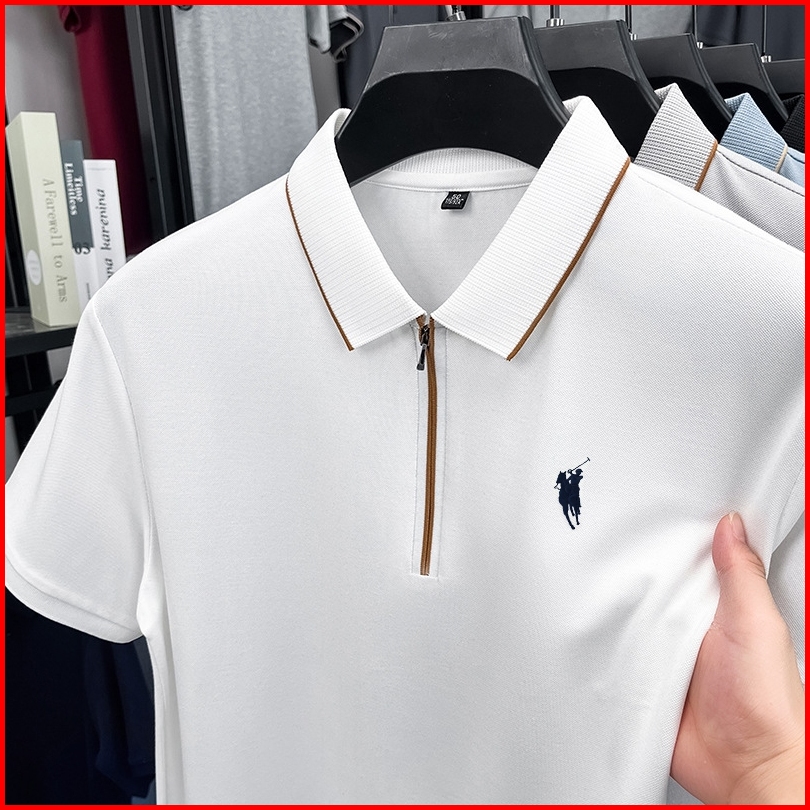 Impor Polo Shirts Pria Premium Setengah Ritsleting Bahan Nyaman Gaya Kasual Elegan
