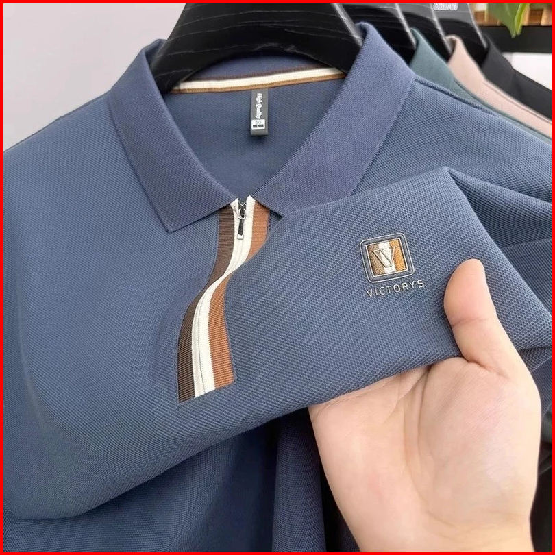 Kaos Polo Pria Resleting Setengah Katun Poliester Kasual Bisnis Premium Half Zipper Gaya Modern Ukuran M3xl