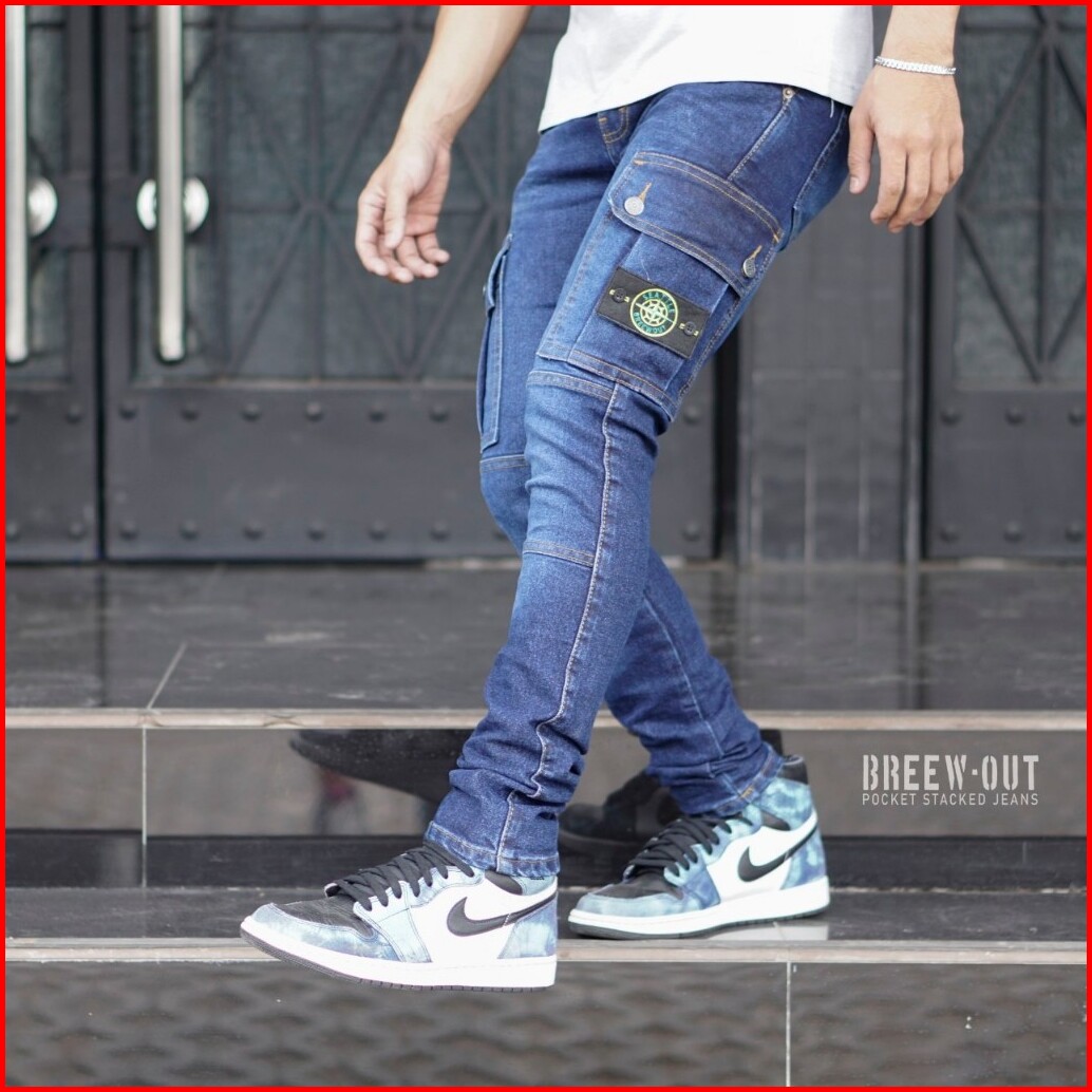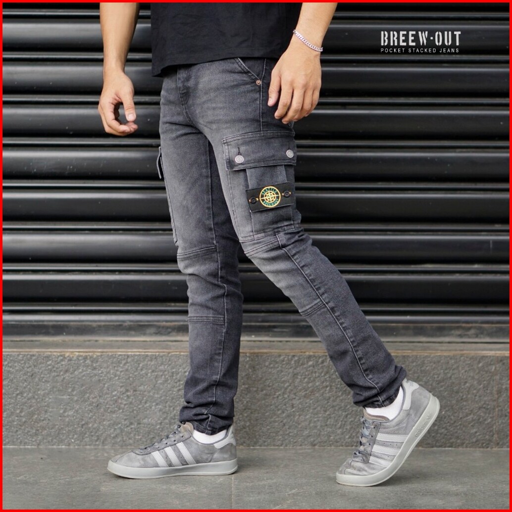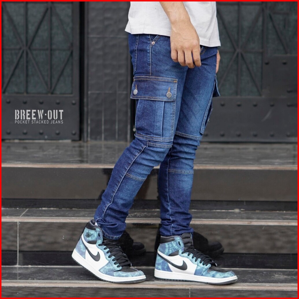 Breew Out Cargo Jeans Pria Original Denim Elastis Cargo Denim 27-34 Terlaris Celana Jeans Cowok Kargo Panjang Pria Dewas
