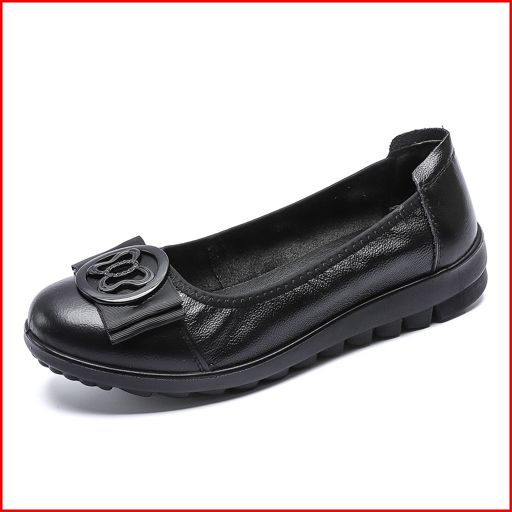 Lurad Sepatu Wanita Slip On 1865 Kulit Flat Shoes Simple Pantovel Formal Casual Hitam Kerja