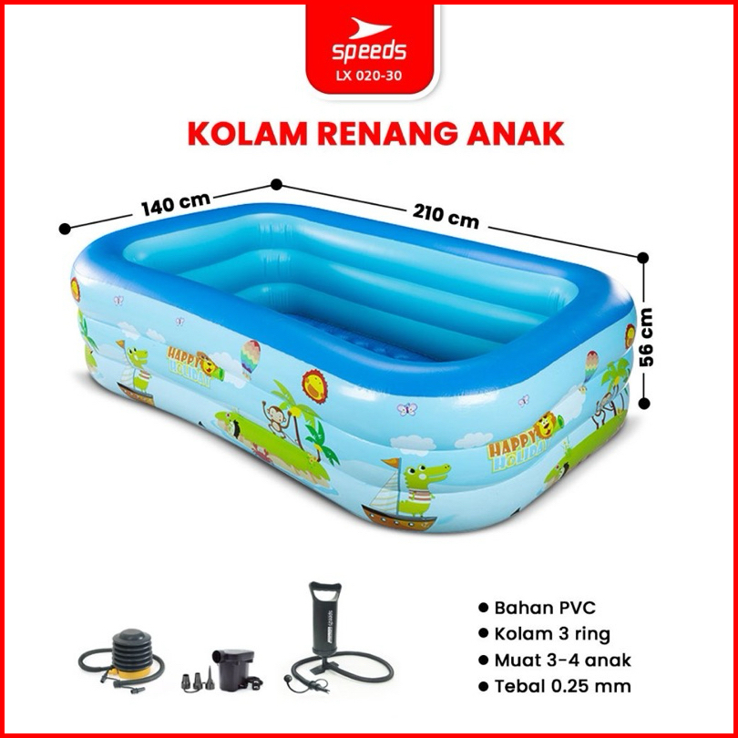 Speeds Kolam Renang Anak 210x140x56cm 3 Ring Layer Motif Kolam Renang Bayi Portable Bahan Kuat Inflatable Swimming Pool