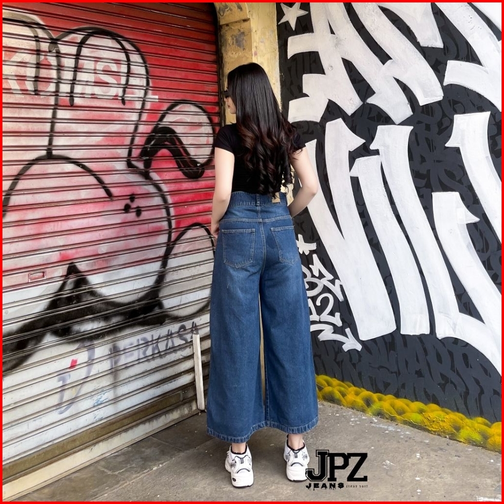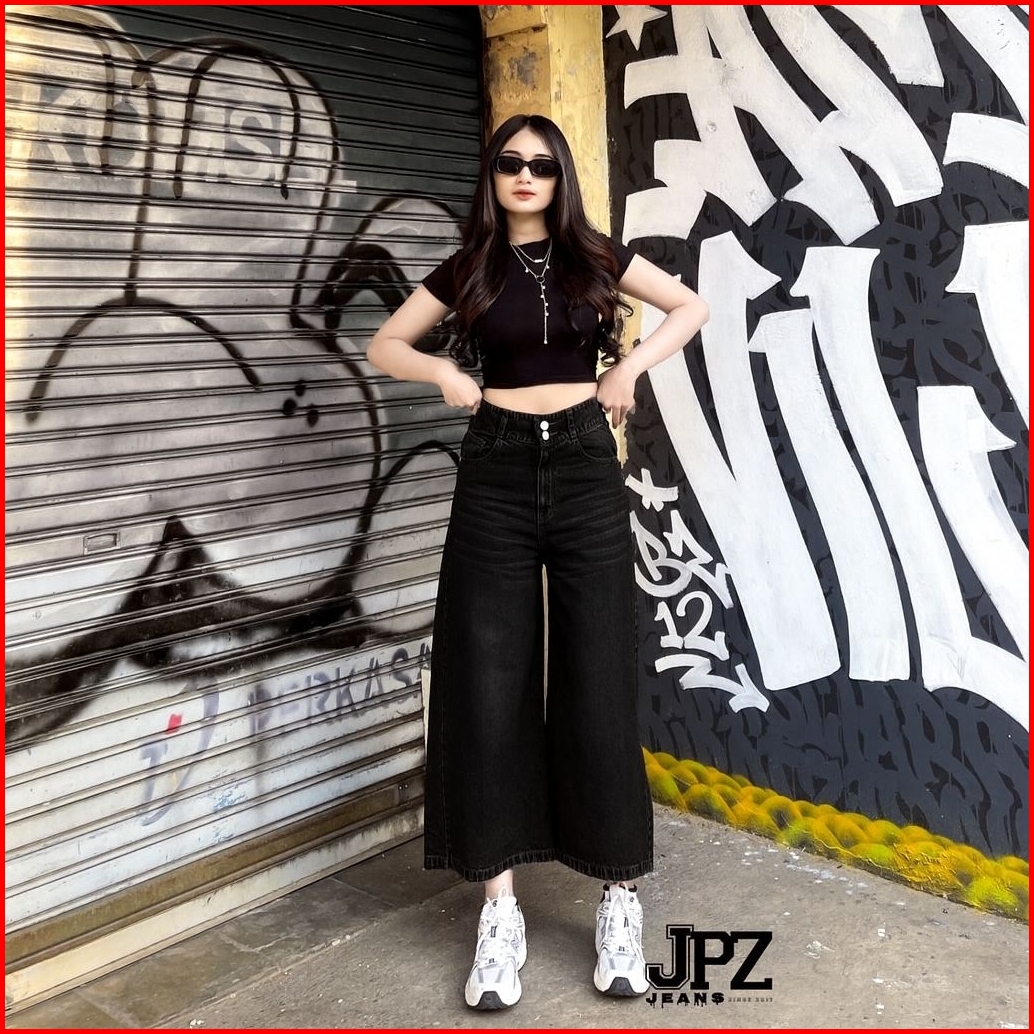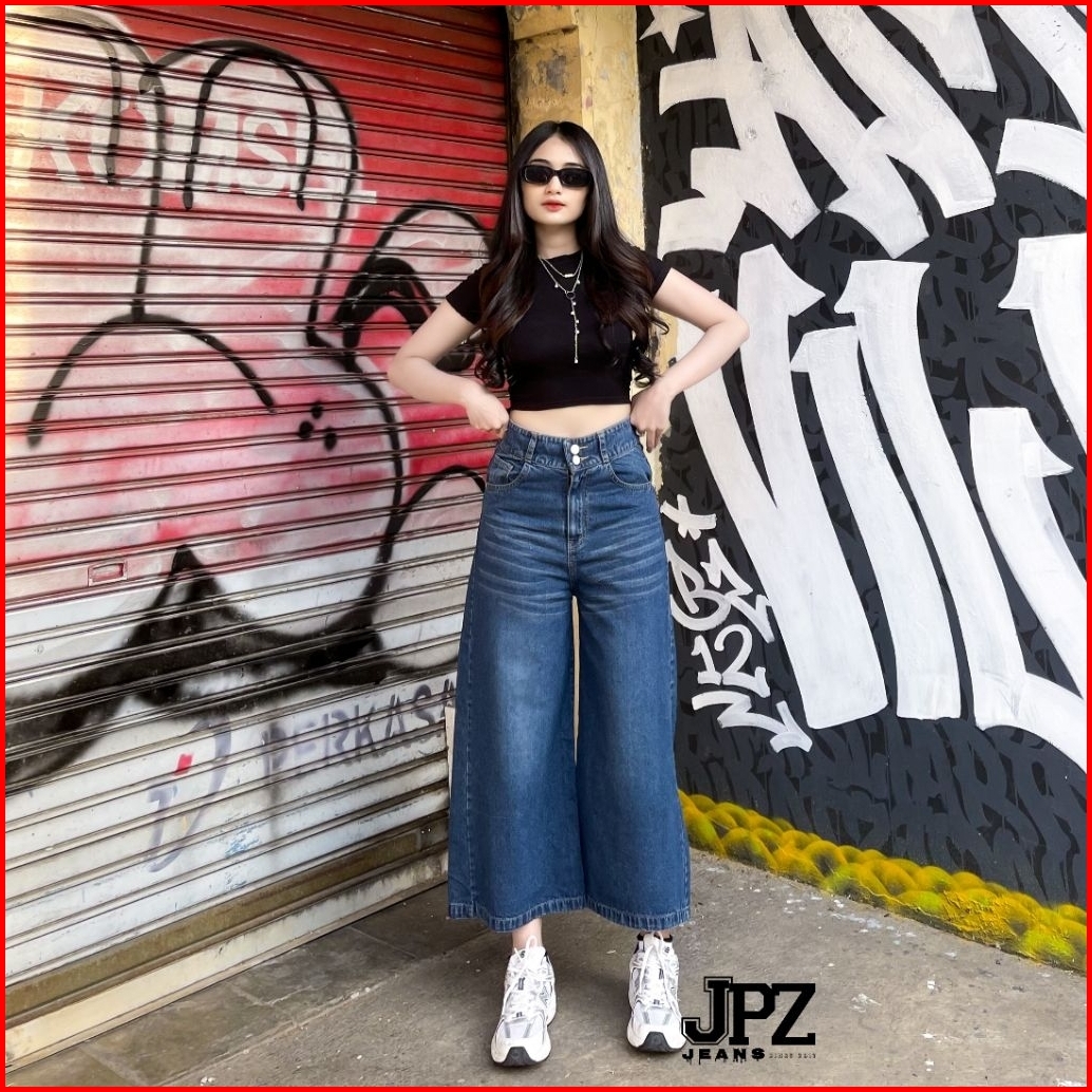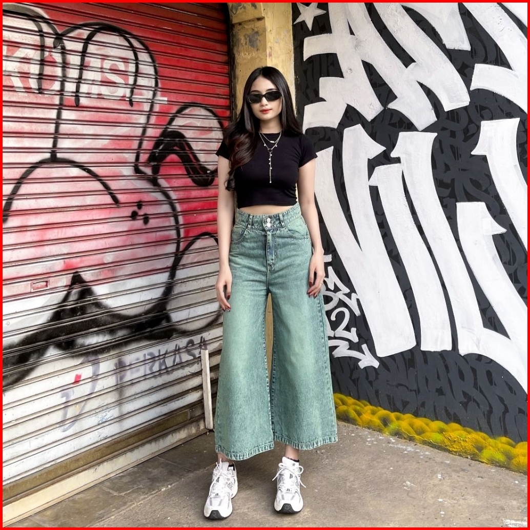 Celana Kulot Jeans Wanita 7 8 Higwaist Double Kancing Premium Tebal