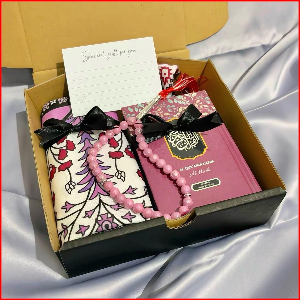 Ynk Gift Box Set Sajadah Traveling Dan Alquran Saku Mini Untuk Cewek Hadiah Kado Gift Box Ulang Tahun Cewek Hadiah Kado