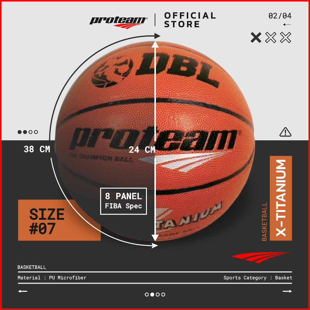 Bola Olahraga Basket Ball Dbl Proteam Size 7 Indoor Kulit Pu Microfiber Leather Type X Titanium