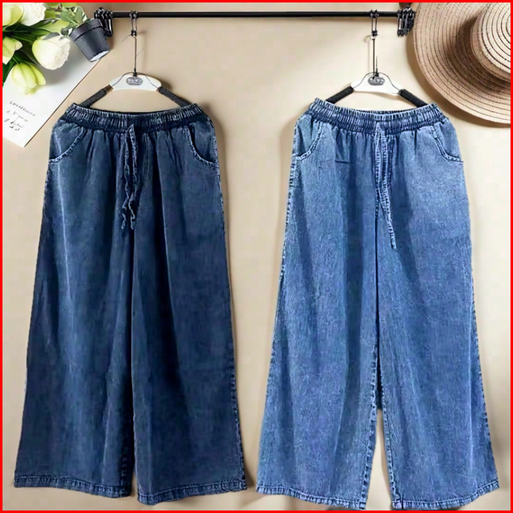 Taggita.co - Celana Kulot Jeans Jumbo Dan Standar Celana Panjang Full Karet Wanita High Waist