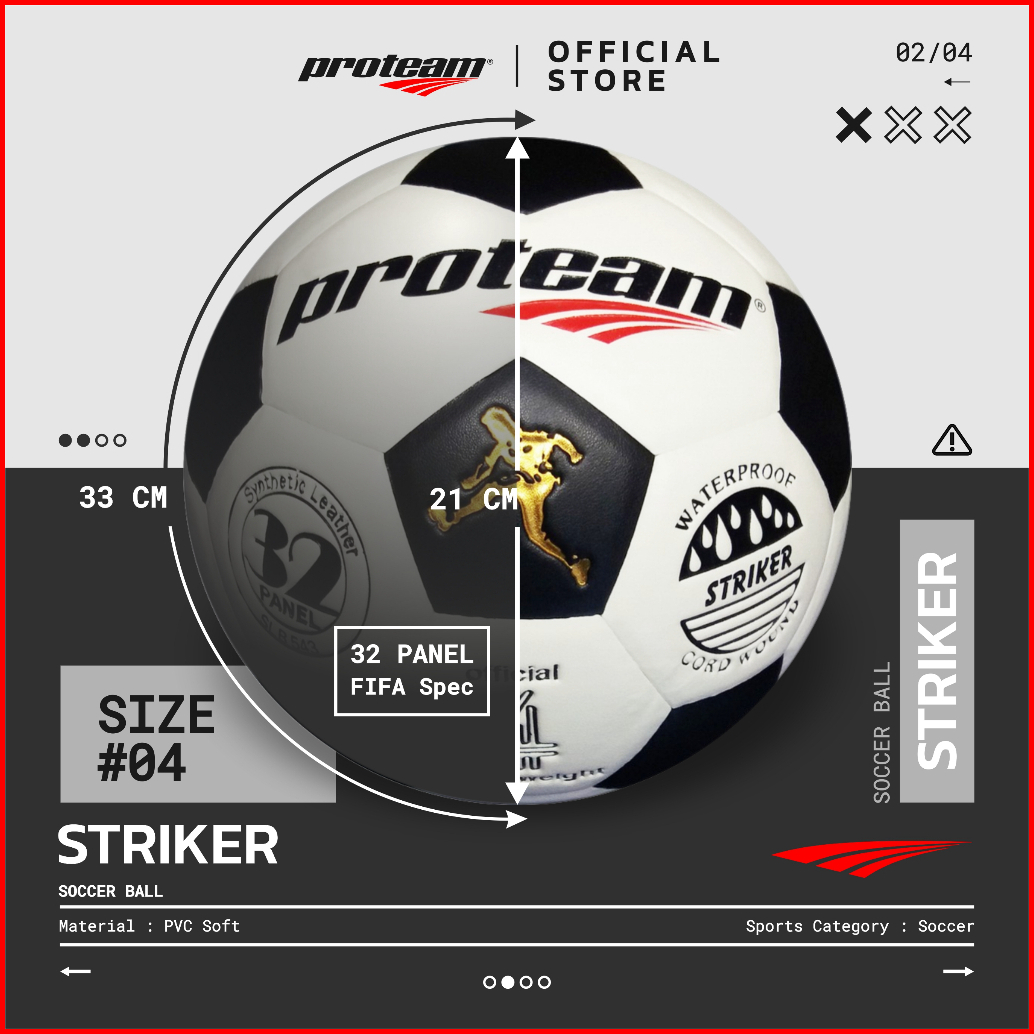 Bola Sepak Proteam Original Soccer Ball Classic Hitam Putih Striker Size 4