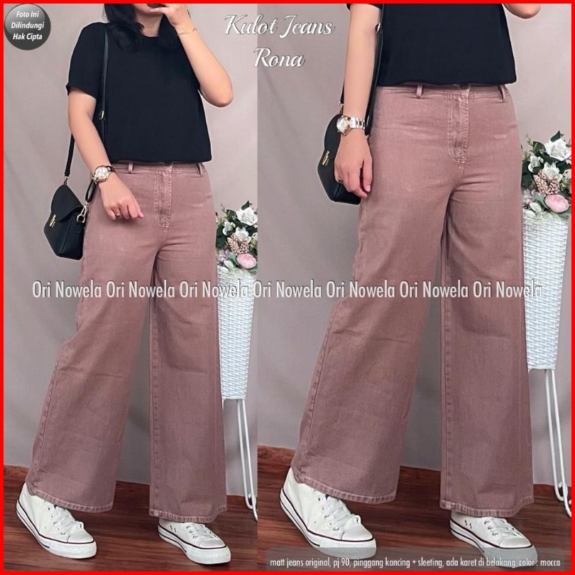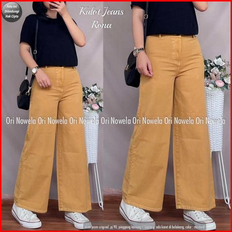 Celana Polos Jeans Kulot Rona Highwaist Blue Series Standart Dan Jumbo Ukuran