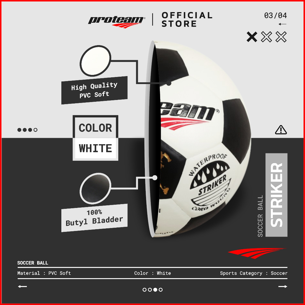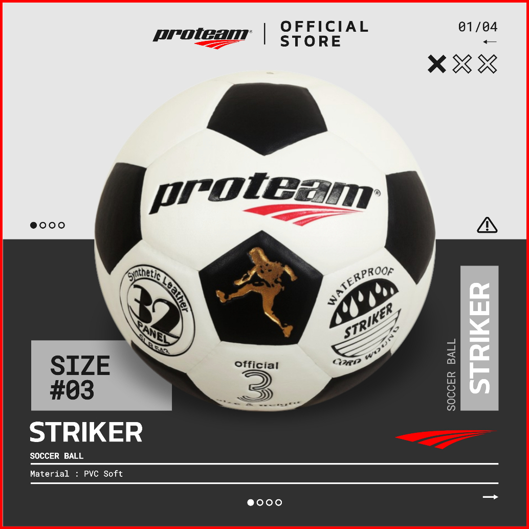 Bola Sepak Proteam Original Soccer Ball Classic Hitam Putih Striker Size 3