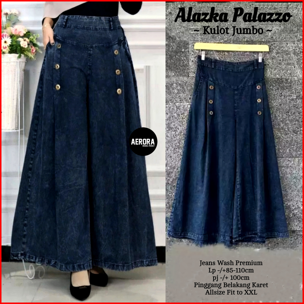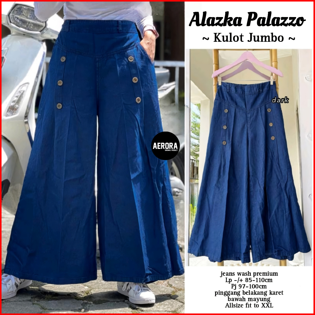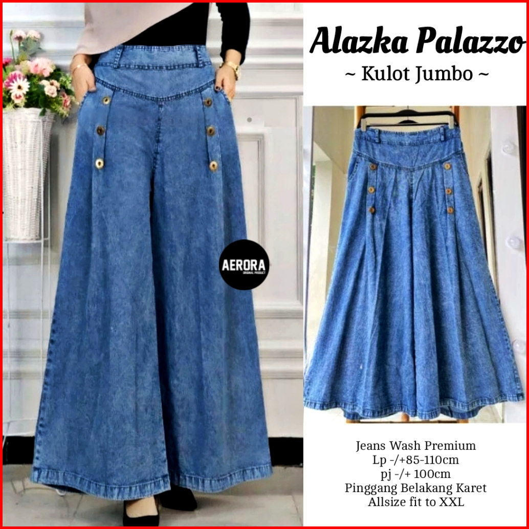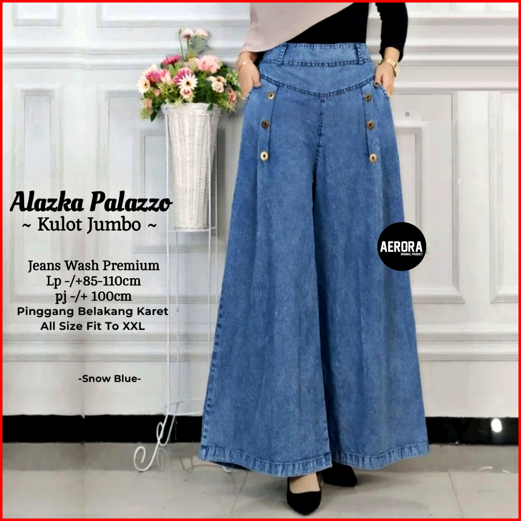 Aerora Celana Kulot Jumbo Alazka Palazzo Jeans Wanita Hight Waist Mayung Kekinian Pinggang Karet