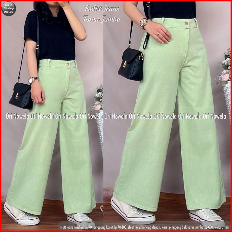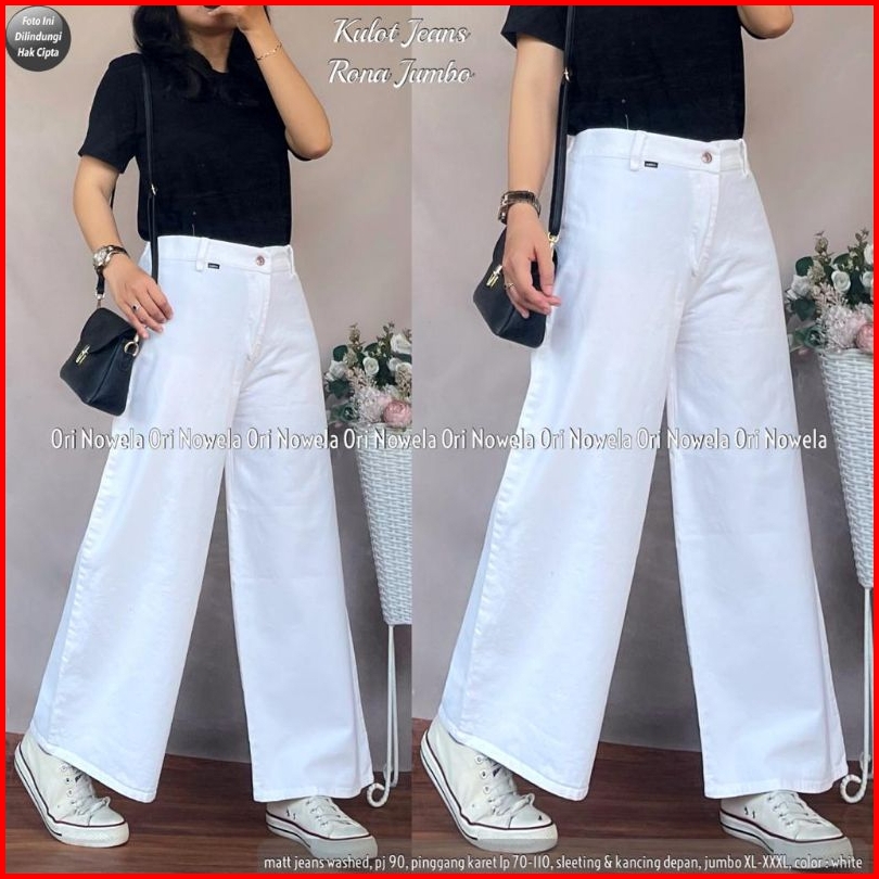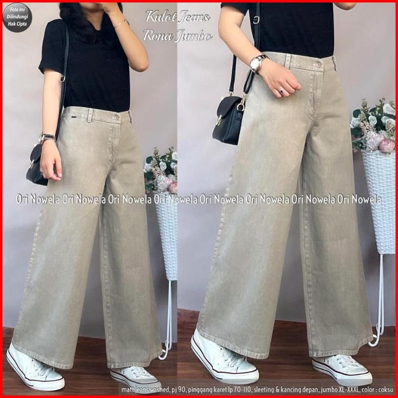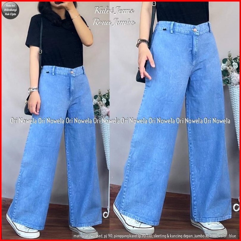 Celana Kulot Jeans Rona Jumbo Standar Pinggang Karet Zipper Depan