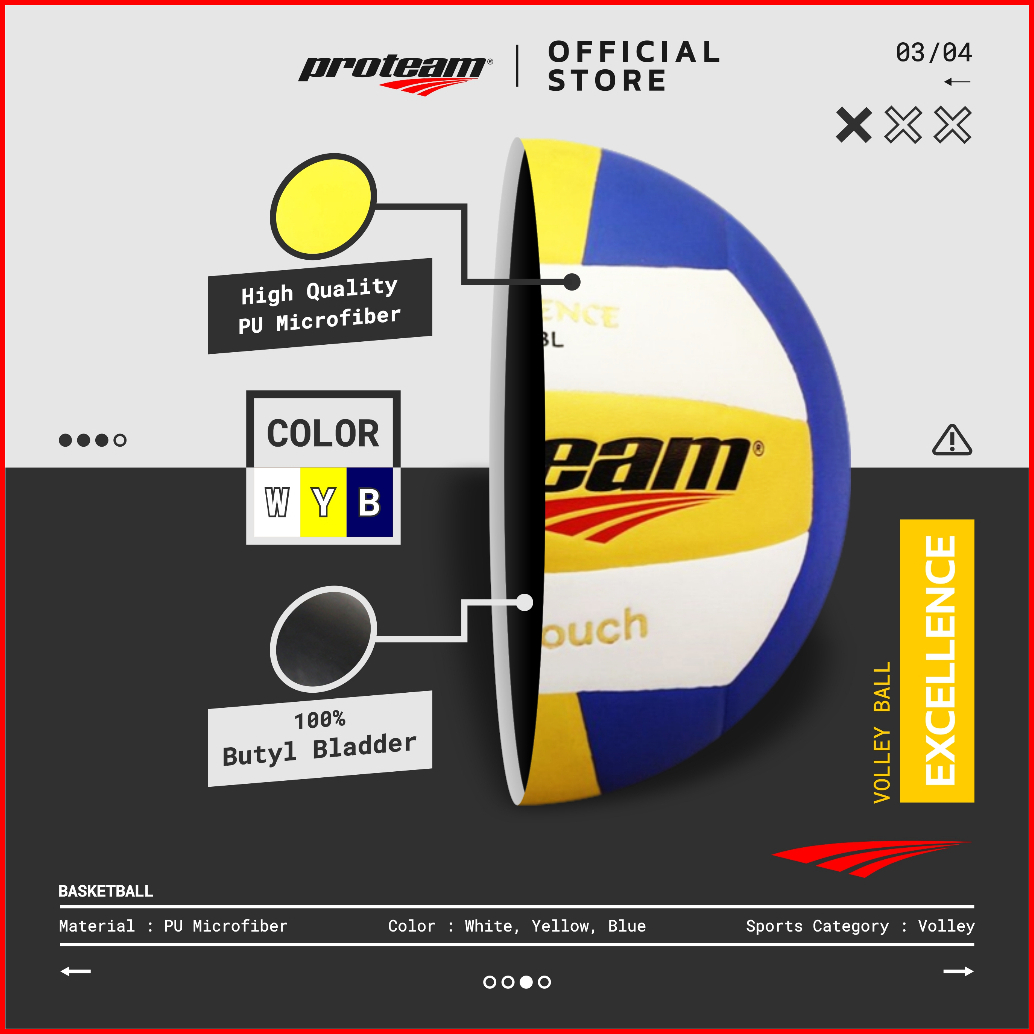 Bola Voli Original Proteam Volley Ball Excellence Blue-yellow Bahan Pu Size 5