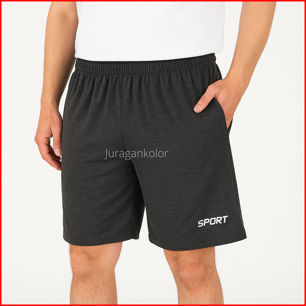 Celana Pendek Pria Santai Polos Kolor Cowok Kaos Baby Terry Bordir