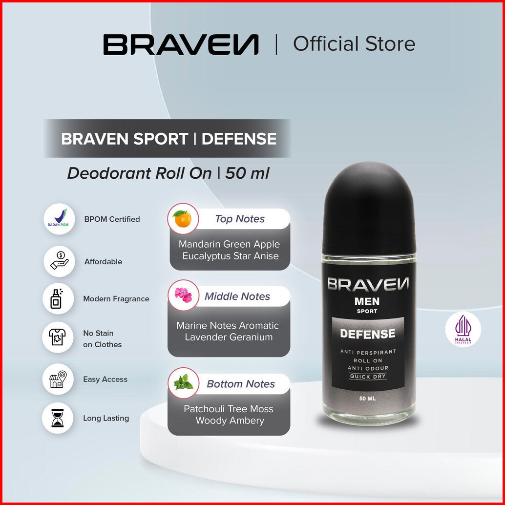 Braven Roll On Defense Deodorant Antiperspirant Perlindungan Sepanjang Hari Deodorant Cowok Ketiak Kering