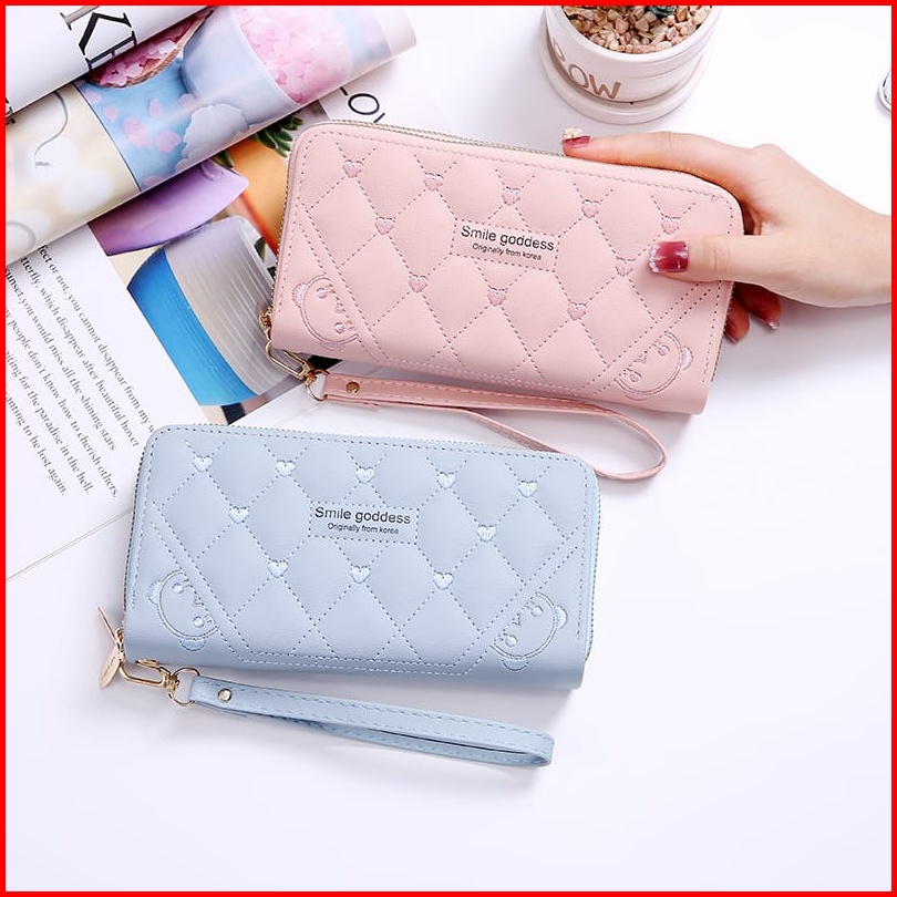 Smile Goddess Versi Korea Dompet Panjang Tas Ritsleting Wanita Dompet Koin D307
