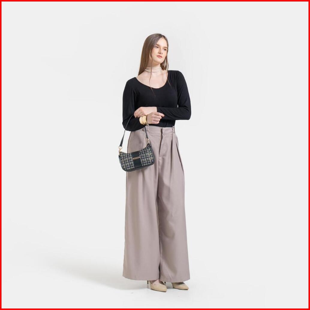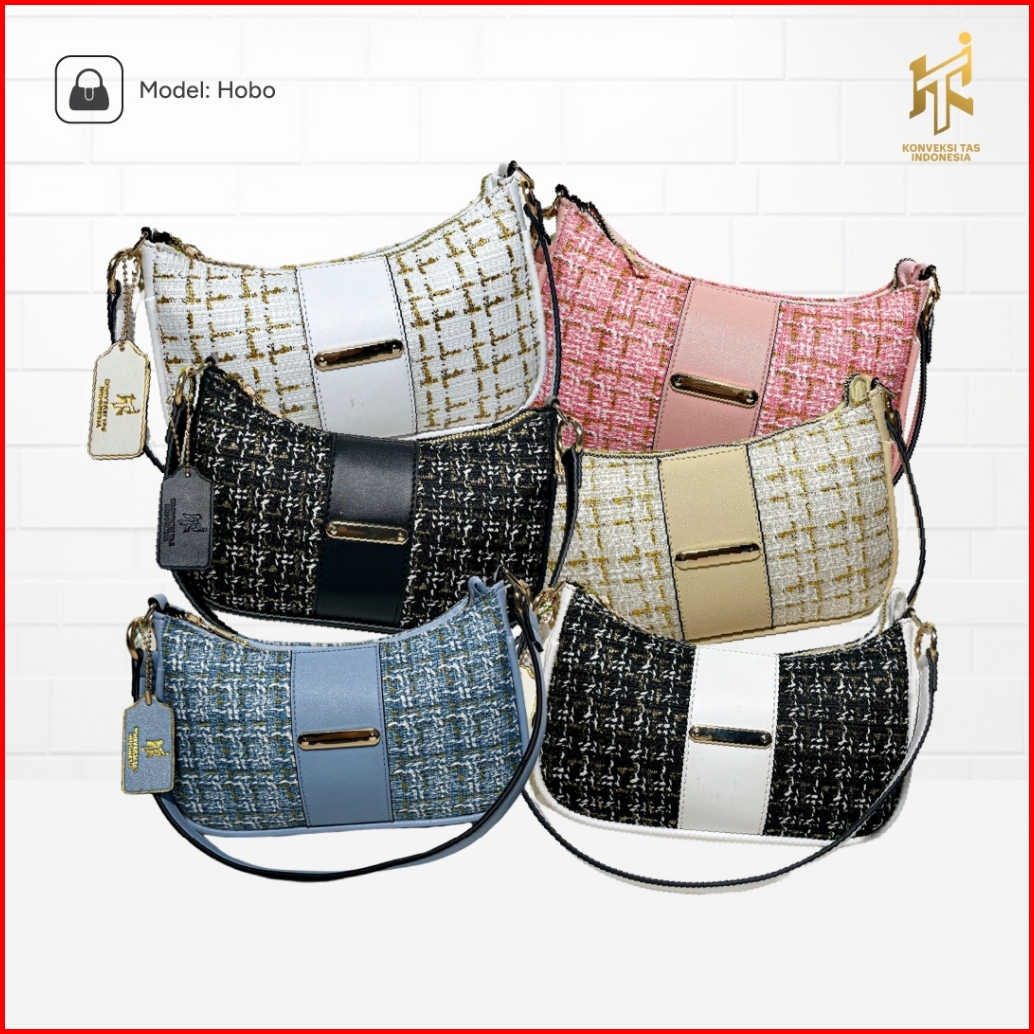 Kti Tas Lunette Hobo Kombinasi Canvas Leather Tekstur Pola Klasik Ringan