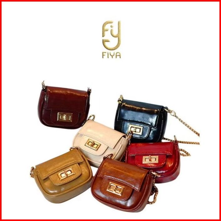 Fiya Tas Koin Mini New Collection Motif Polos Glossy Tas Selempang Tali Ulir Top Mini Sling Bags