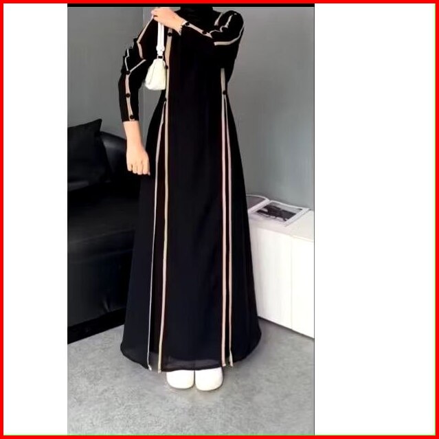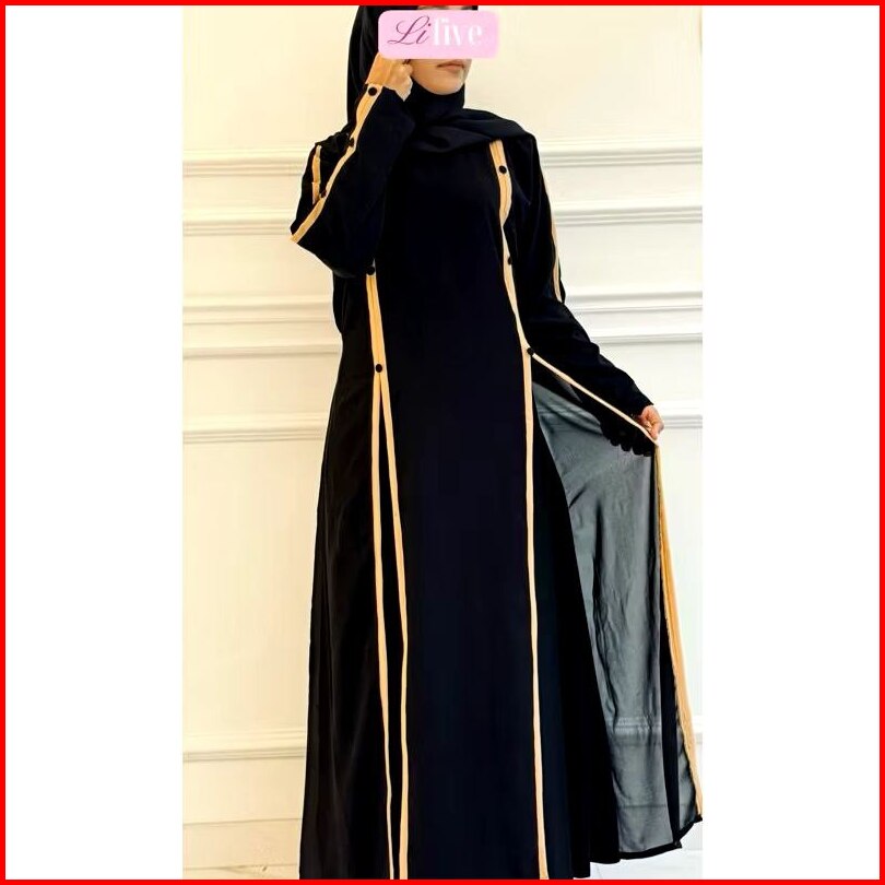 Abaya Hitam Turkey Aisyah Gamis Syari Muslimah Jetblack Hitam Kombinasi Chiffon
