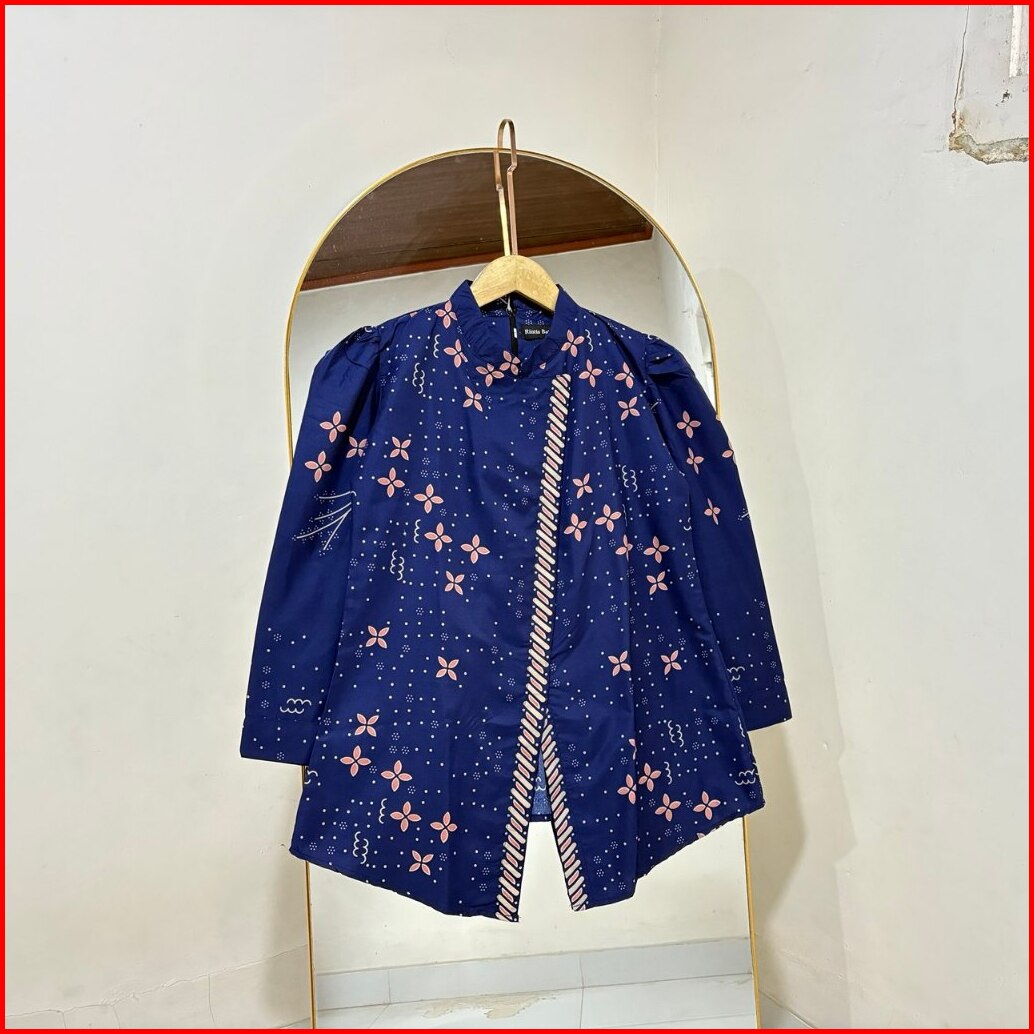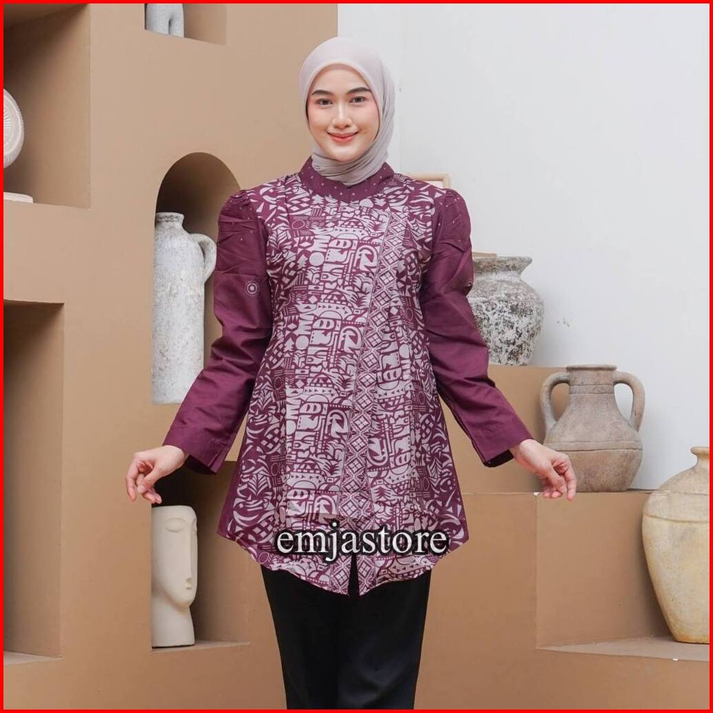 Batik Atasan Wanita Modern Baju Batik Lengan Panjang Puffy Janggan