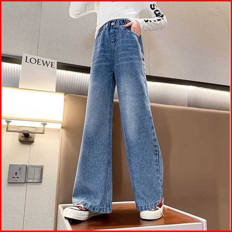 Celana Jeans Anak Perempuan Model Kulot Sakena Gombrong Wisker Sprey Umur 3 Tahun Sampai 15 Tahun Warna Snow Biru Snow B