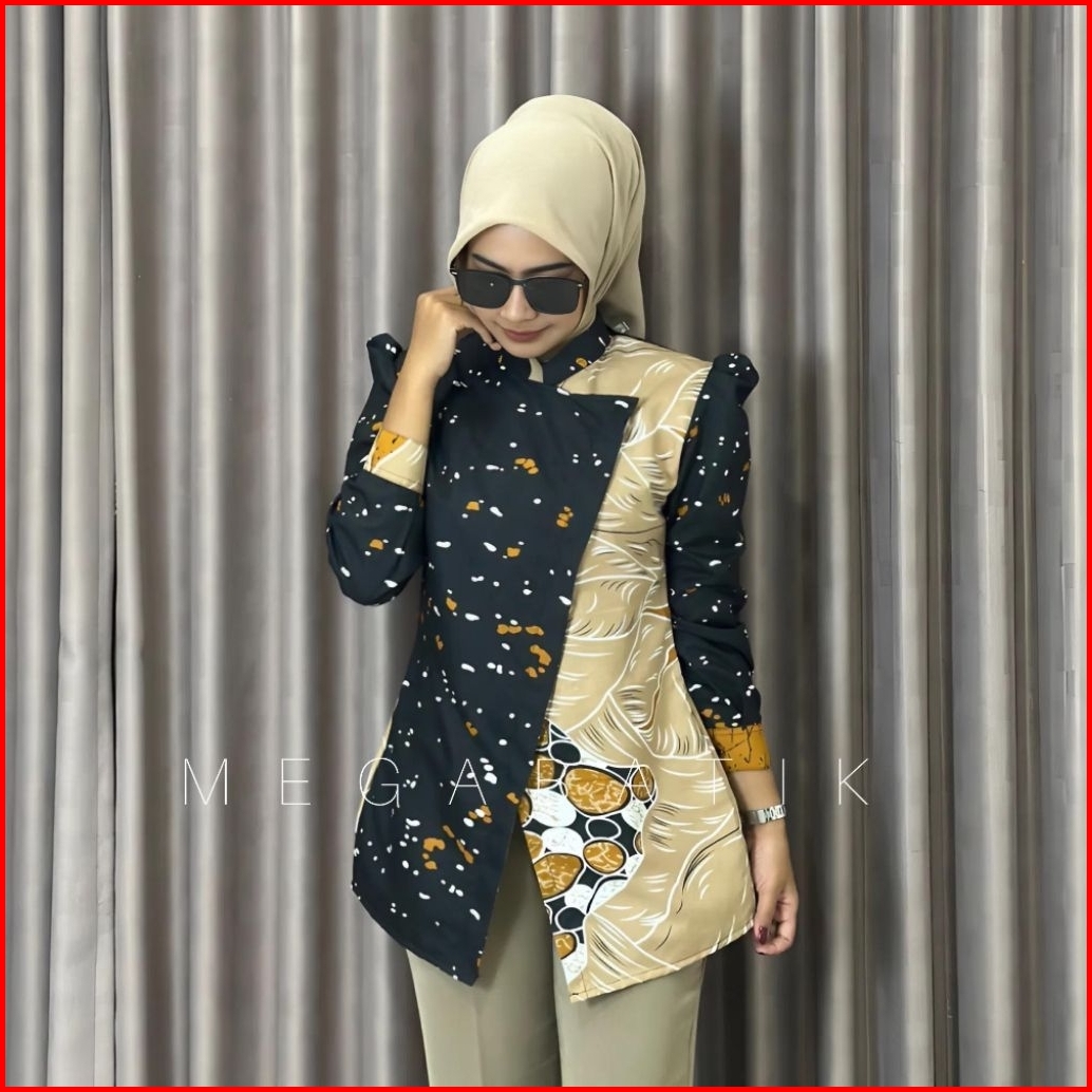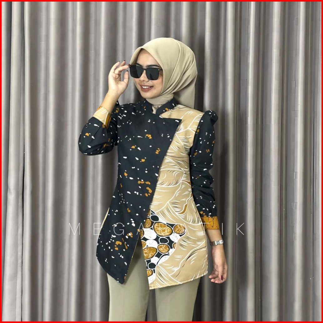 Ayunindya Hitam Atasan Batik Wanita Lengan Panjang Bahan Katun Halus Lapis Furing