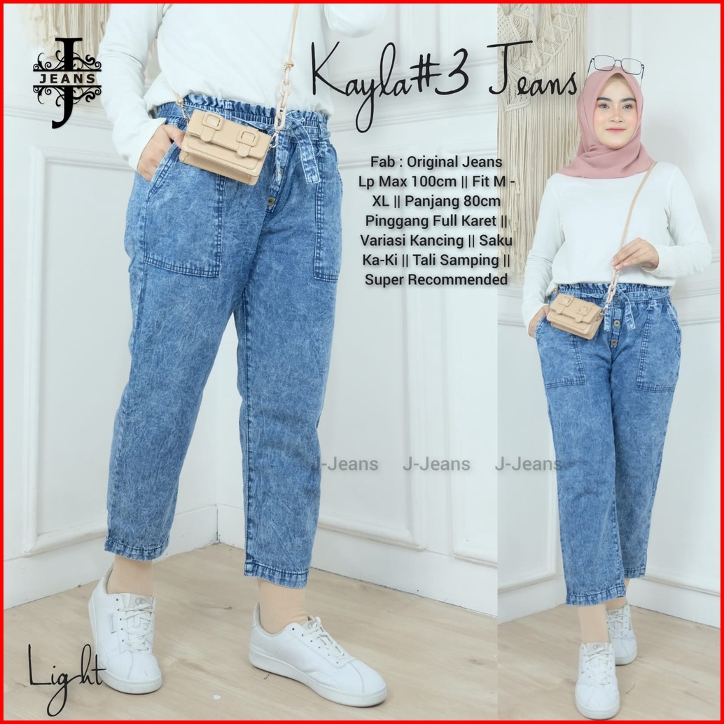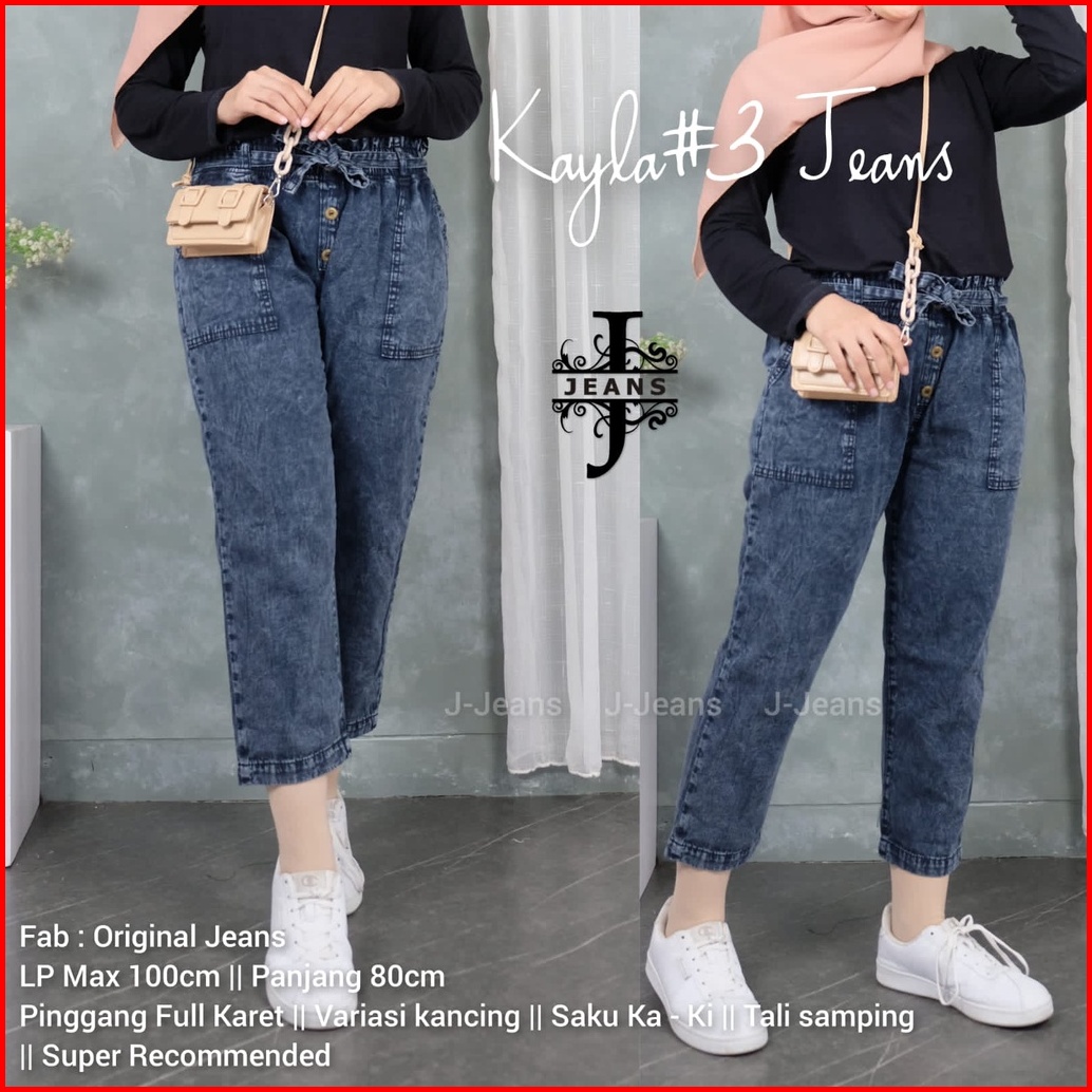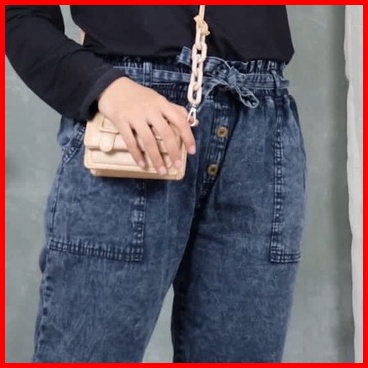 Kayla Jeans Celana Baggy Boyfriend Jins Kancing Snow