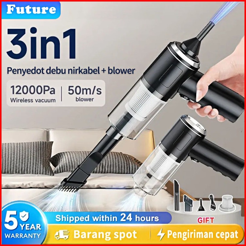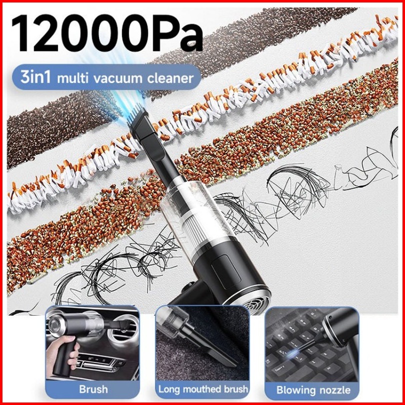 Garansi 3 Tahun 3in1 Mini Vacuum Cleaner 12000pa Cordless Blower Vacuum Usb Rechargeable Small Car Vacuum Untuk Rumah Mo