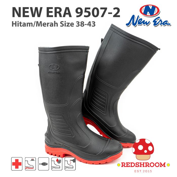 Sepatu Boot Tinggi New Era 9507 Hitam Merah Boots Karet Shoes - 42