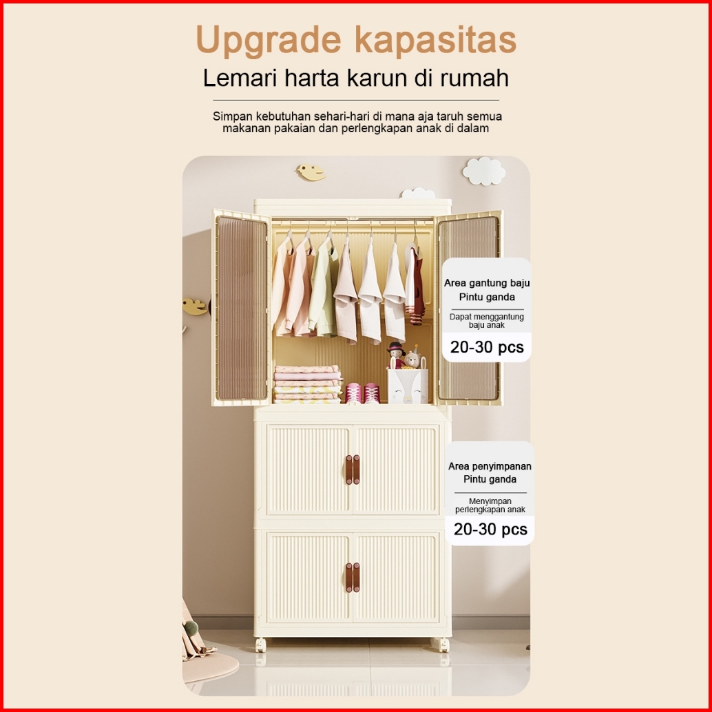 Hidup Mewah Lemari Baju Bayi Anak Plastik Lemari Pakaian Estetik Minimalis Dengan Roda