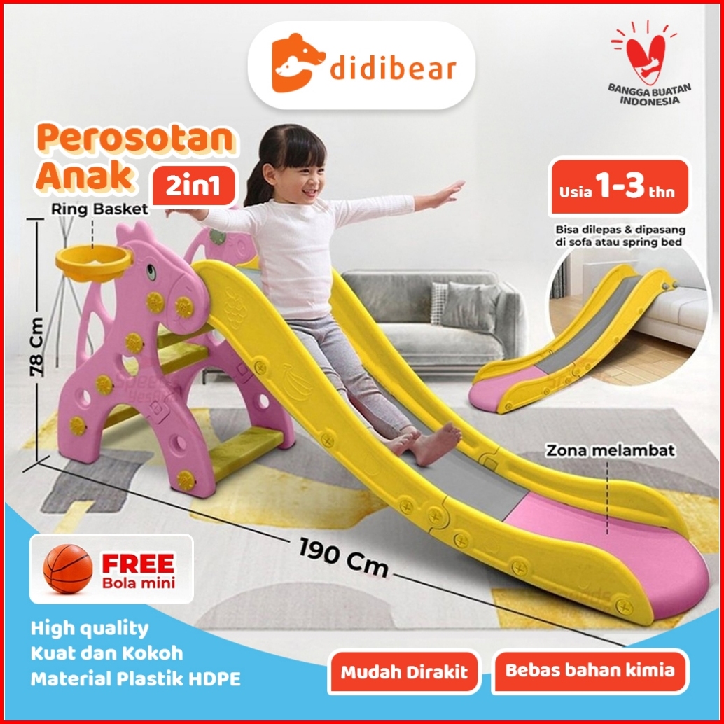 Didibear Mainan Anak Perosotan Anak Model Jerapah Luncuran Prosotan Lipat Free Ring Dan Bola Basket