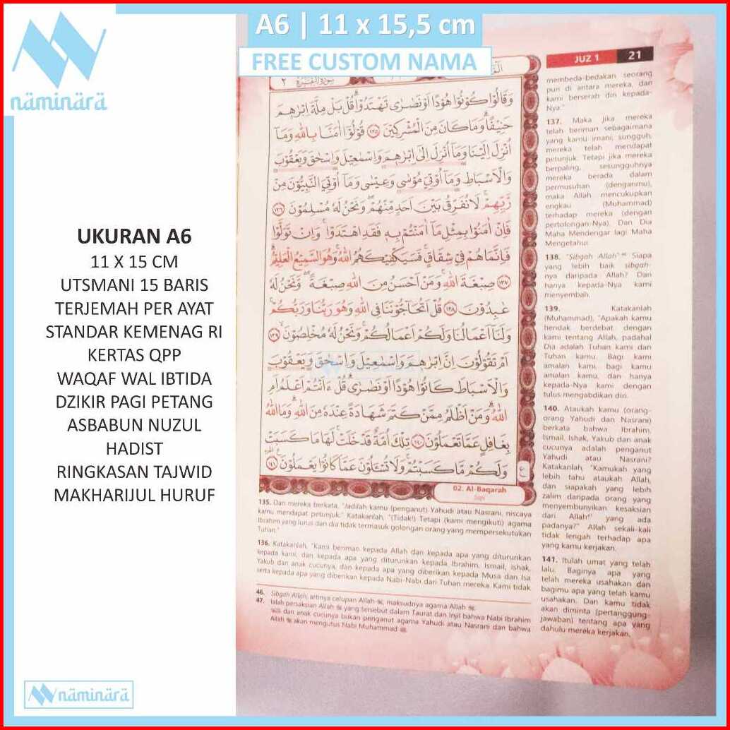 Alquran Terjemah Perkata Tajwid Warna Bisa Custom Nama Di Cover Rasm Utsmani Size A5 Hard Cover Custem Kado Quran