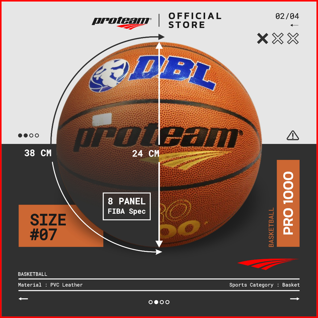 Bola Olahraga Basket Ball Dbl Proteam Size 7 Indoor Outdoor Sport Bahan Leather Kulit Type Pro-1000