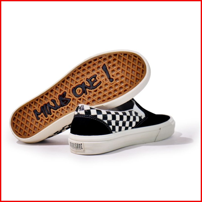 Minusone Footwear - Sepatu Slipon Checkerboard Midlle Hitam